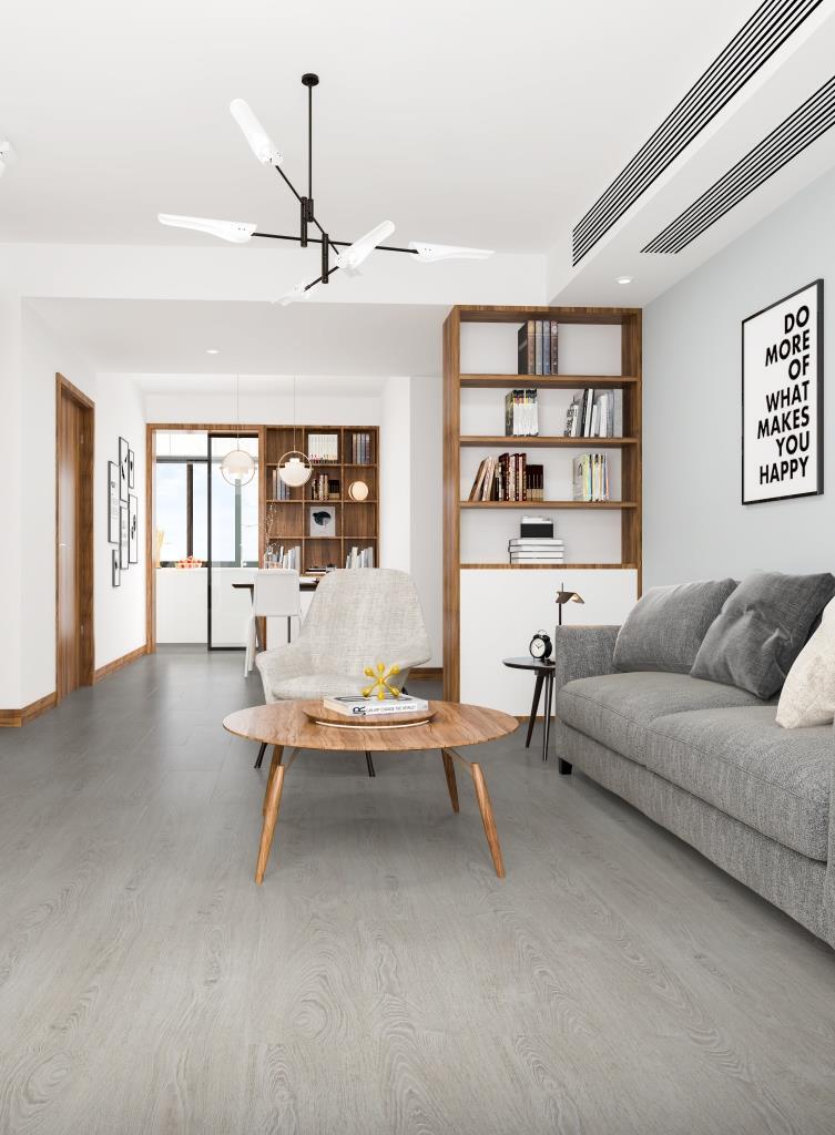 Ламинат Floorwood (Флорвуд) Дуб Флайт наполнит интерьер атмосферой спокойствия благодаря приглушенному серому тону и аутентичной текстуре дуба. Однополосный дизайн в сочетании с четырехсторонней фаской создает выразительную игру линий, формируя аккуратные стыки и зрительно увеличивая пространство.