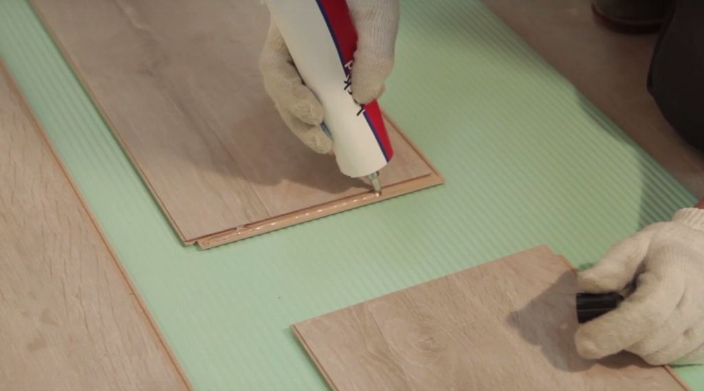 - При монтаже используют специальный герметик для напольного покрытия этого типа.